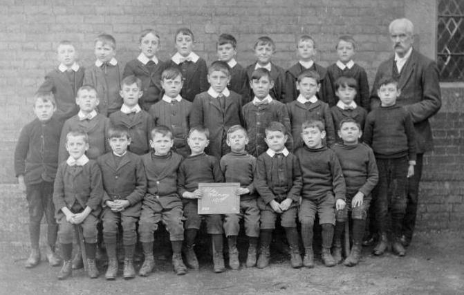 Mr Walter Bearcock, the longest serving headmaster, with the boys in 1915.