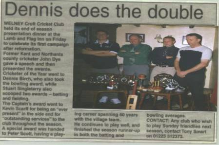 season winning the Wisbech and District Cricket League, for the first and only